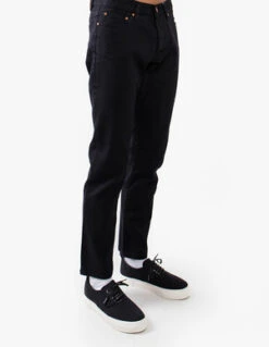 Durable Japanese denim in 3X1’s skinny M5 fit. Black and white weft with tonal black stitching offers a neat salt and pepper look. Button fly with silver hardware. 5 pocket styling with red selvedge strip.