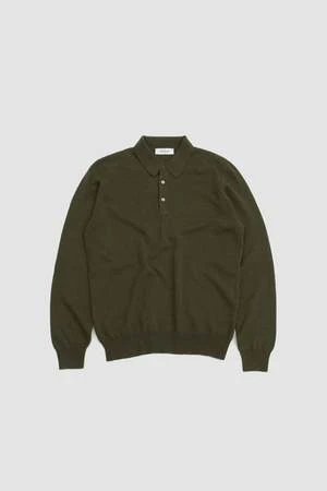 Gran SassoCashmere Wool LS Polo – Dark Green