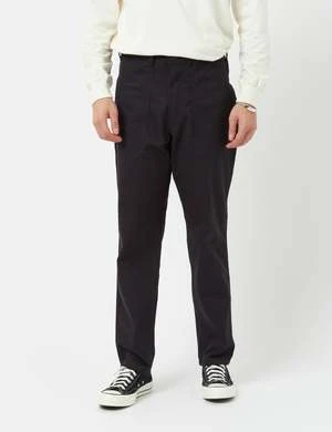 The Fatigue pant are loose-fit, classic workwear trousers and are made from twill cotton. They features 2 front patch pockets, 2 button-up back pockets, belt loops and zip fly.
