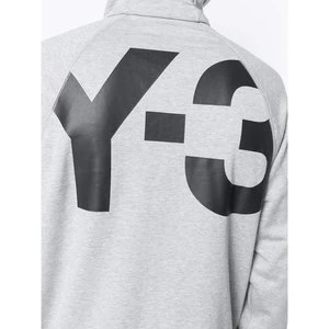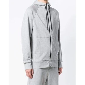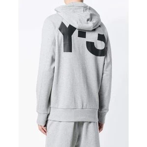 Light grey cotton zip-up hooded sweatshirt from Y-3 featuring a drawstring hood, long sleeves, front pockets and a front zip fastening.